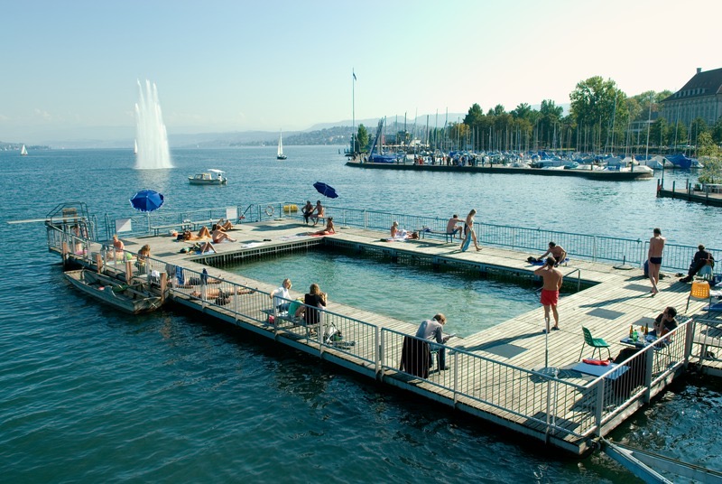 Zurich y Basel. Aprovecho para escapar del calor de Madrid y me meto en los 30 grados de Zurich, bien. Aluciné con el ambiente en el lago. Muchas bicis, praderas verdes, trajes de baño, y mucha gente dentro del lago, yo también. Pensé: “debería estar helada y para nada”.