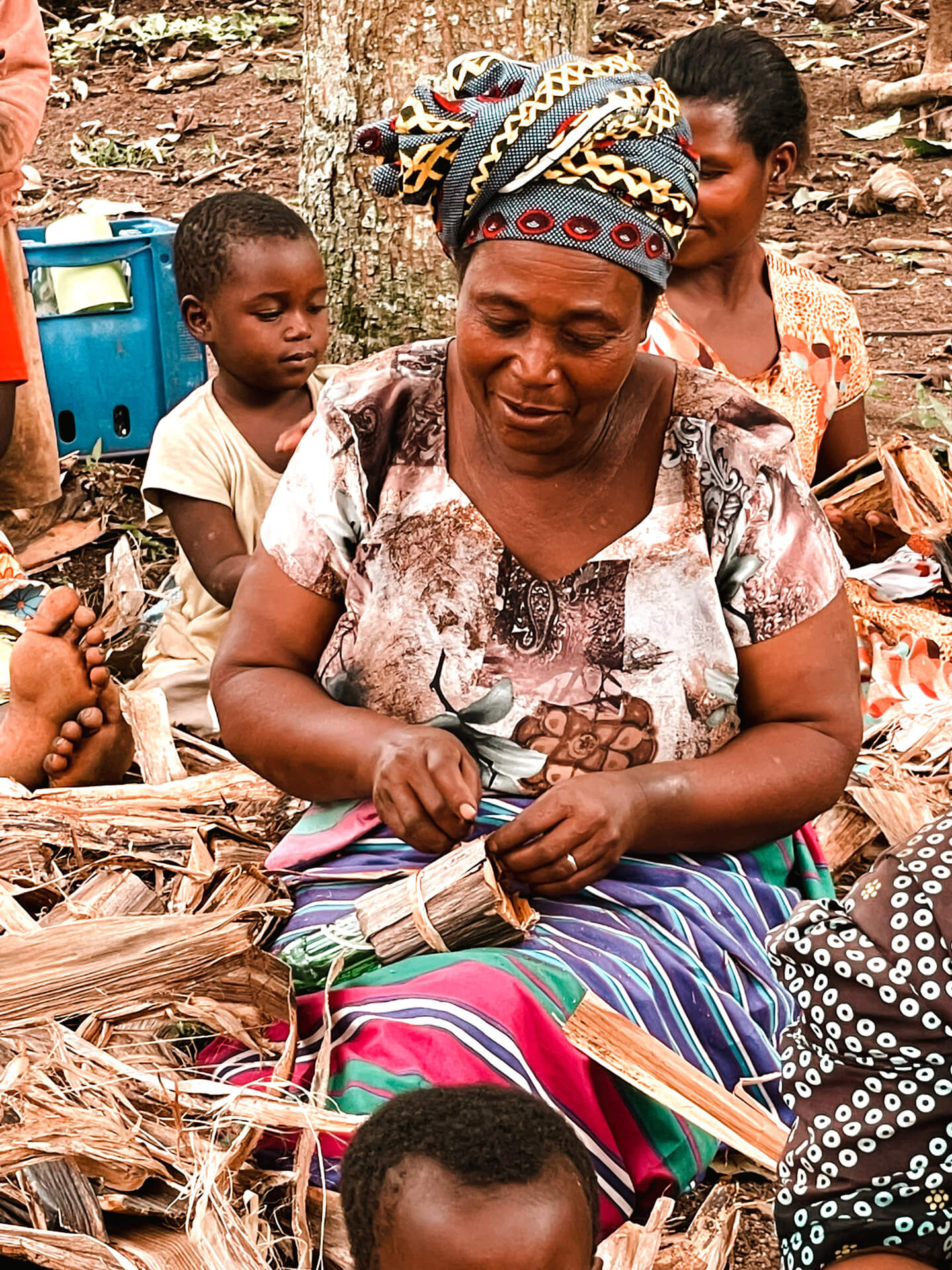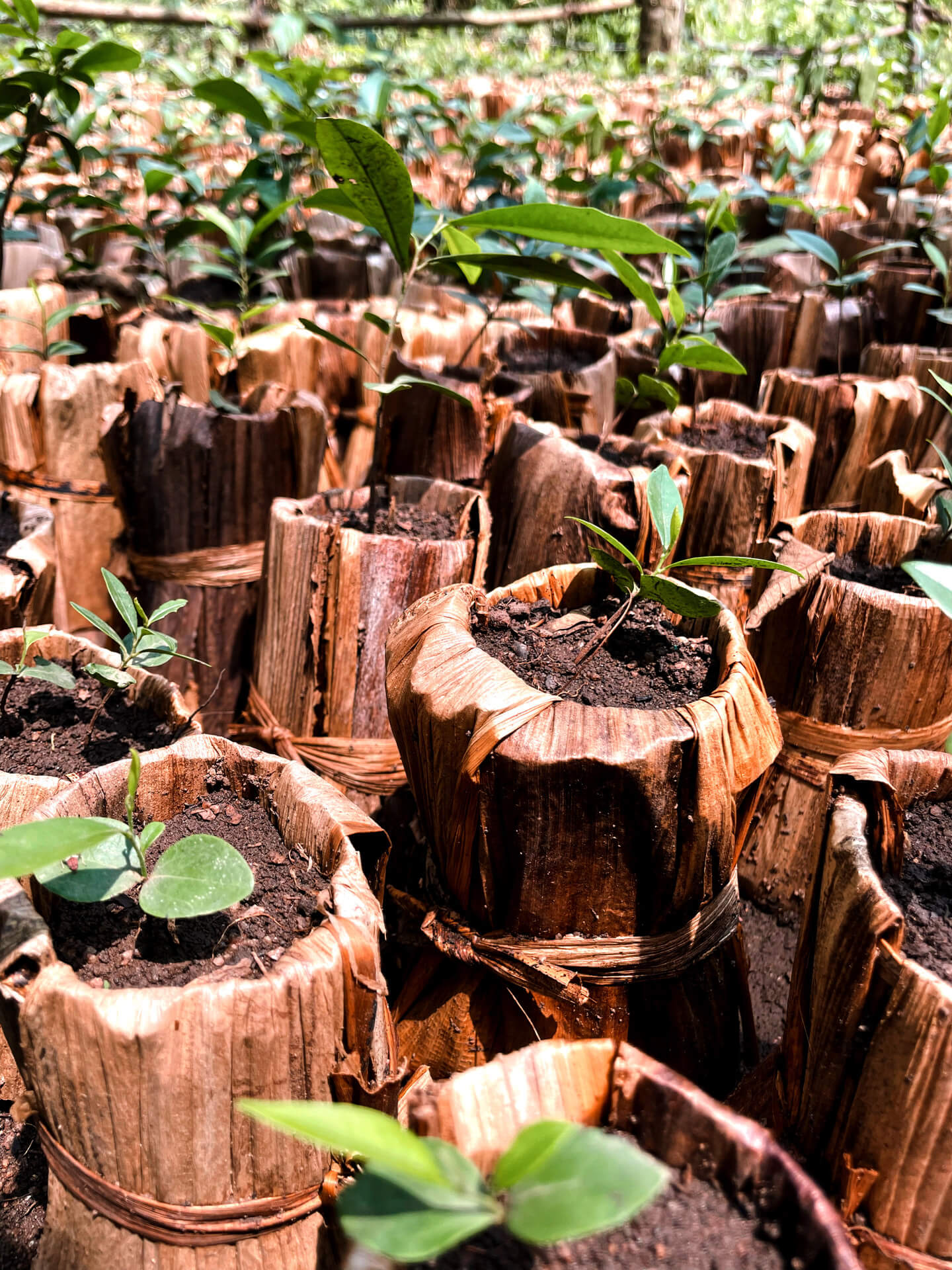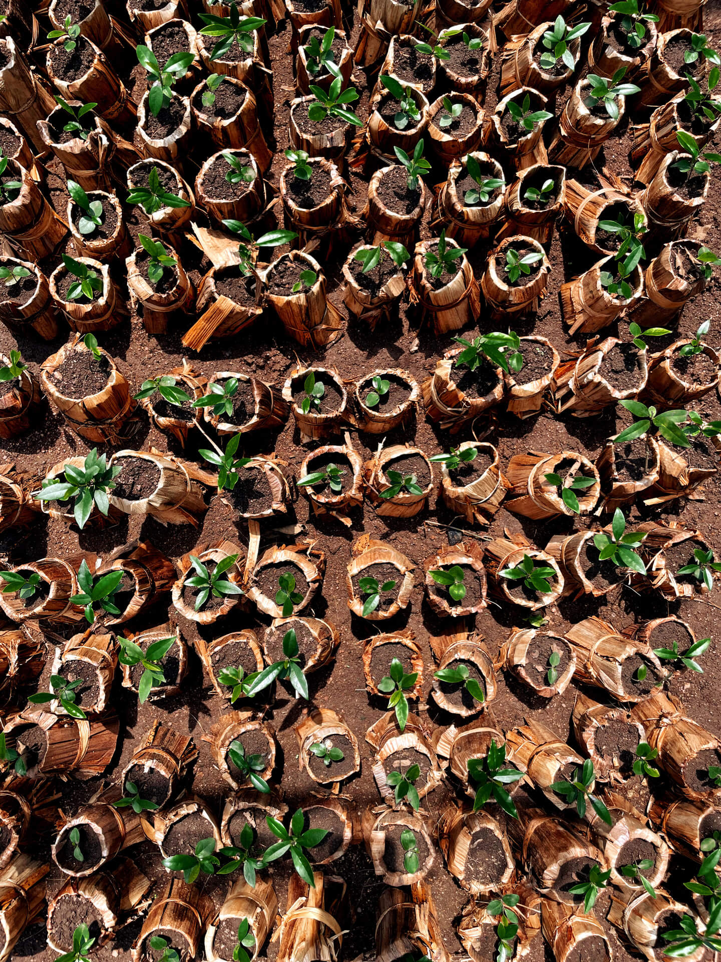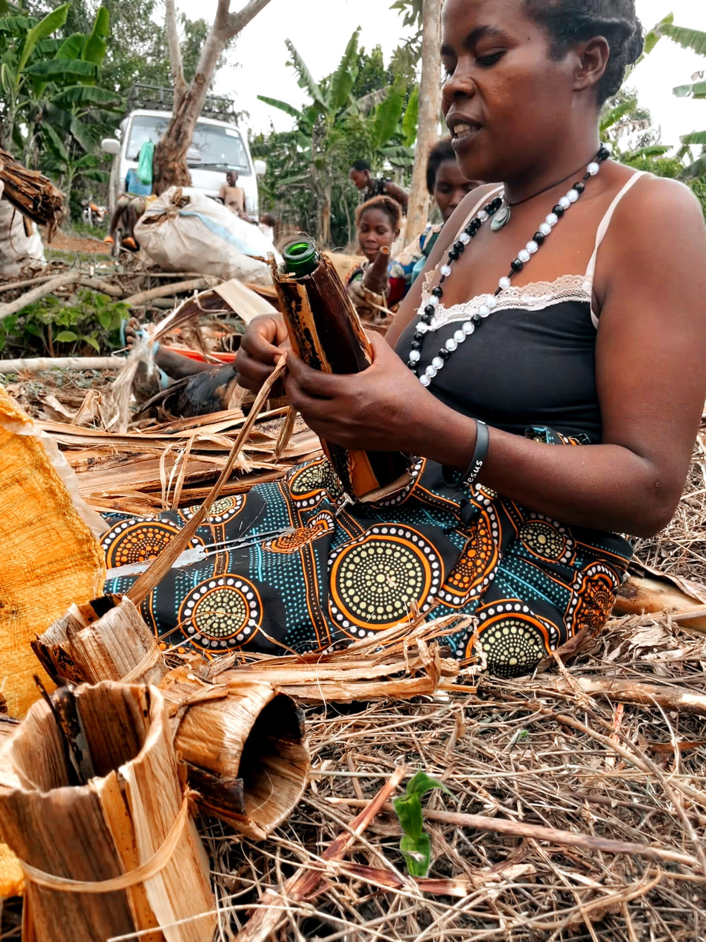 Aprovechando el entorno de las zonas donde abundan las plantaciones plataneras, se utilizan las hojas secas y se usan como tejido vegetal para elaborar las macetas de las plantas. Este sistema permite además ofrecer un empleo digno y seguro a mujeres en riesgo de exclusión de zona, logrando una fuente de ingresos sostenible mediante la realización de estas macetas y en la actualidad han logrado generar empleo para más de 1.500 mujeres de estas zonas de África.