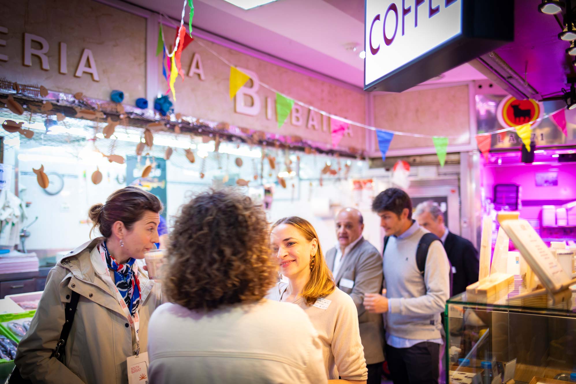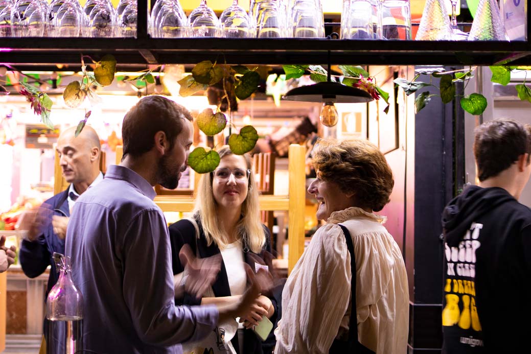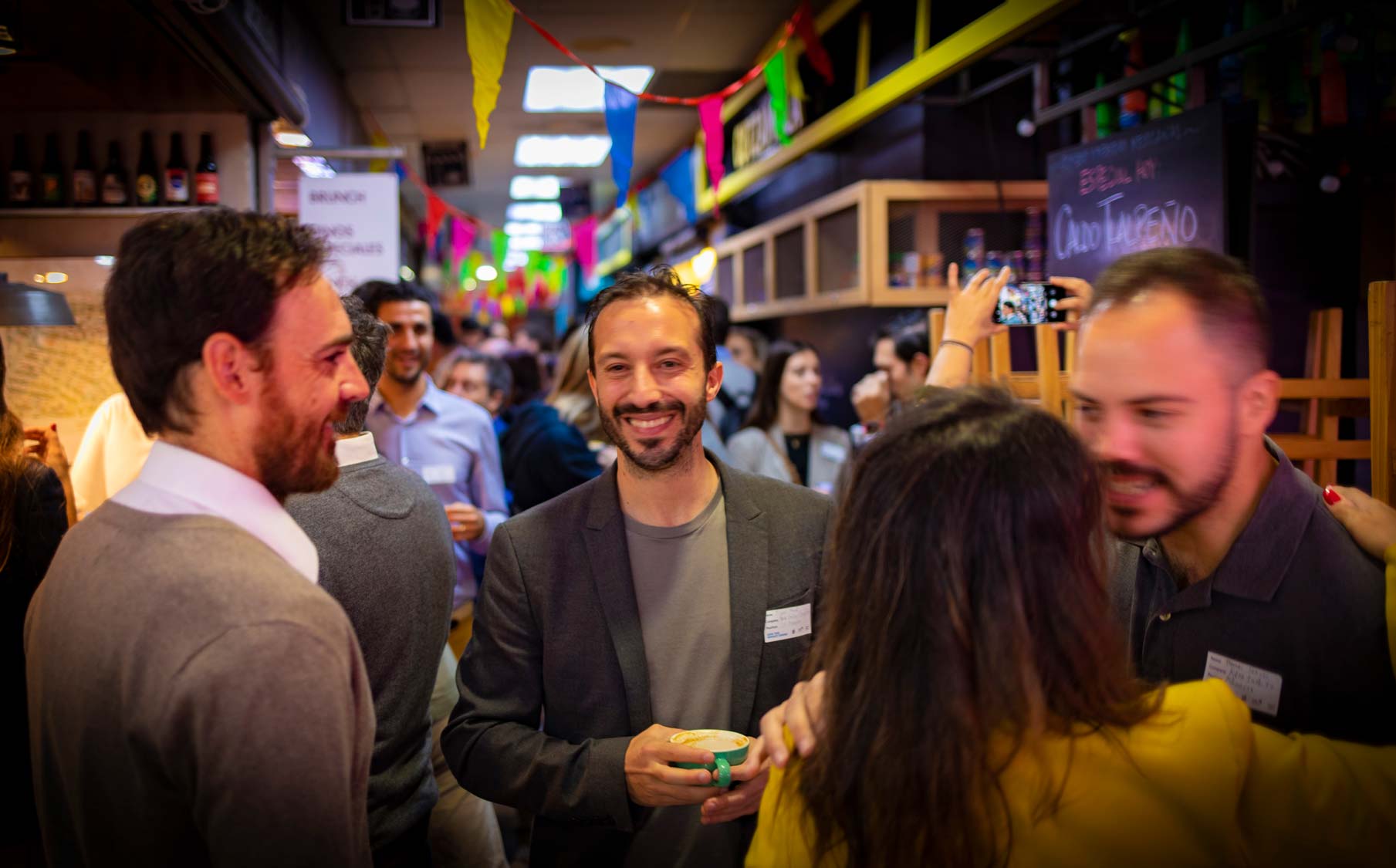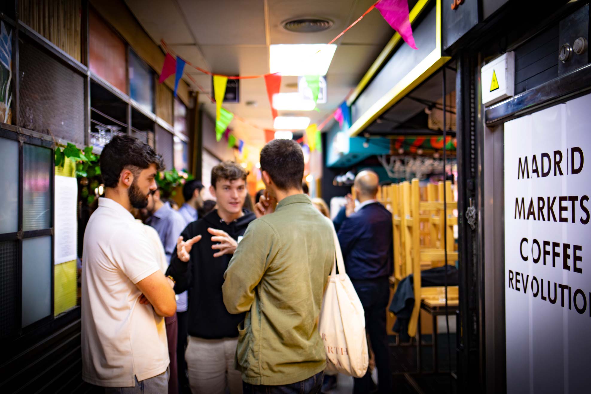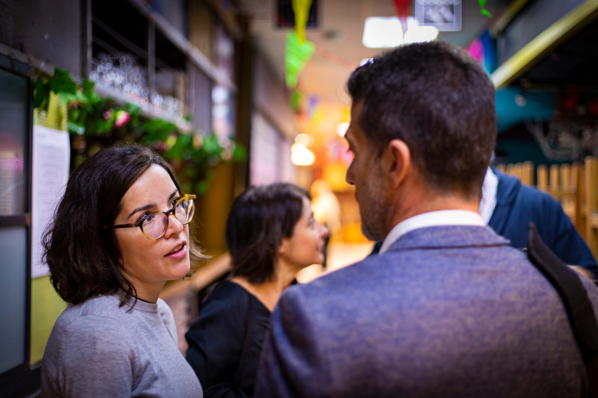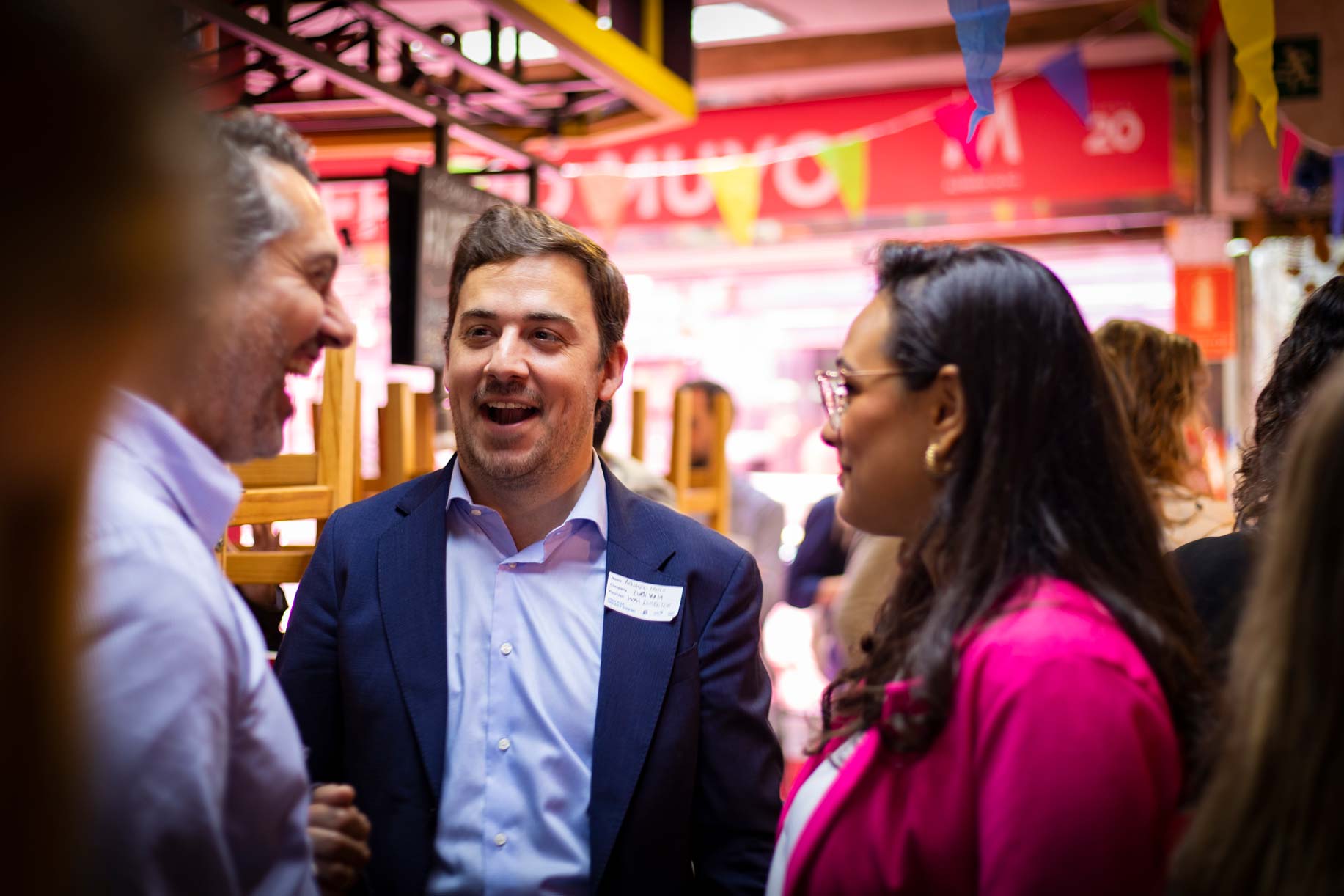 Startups y Fondos de inversión interactuando en el Mercado de Antón Martín durante el MadBlue Impact Morning Mixer.