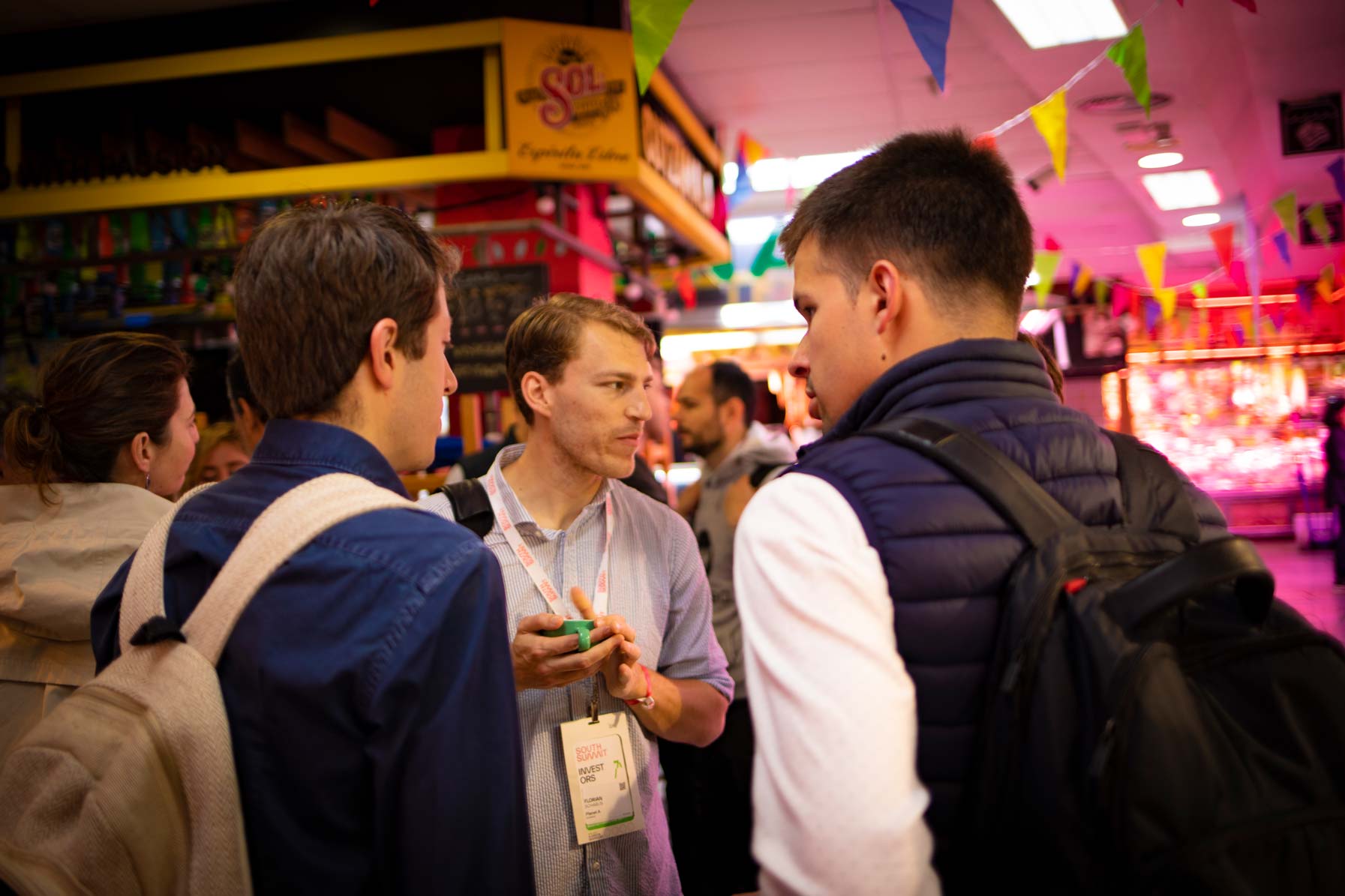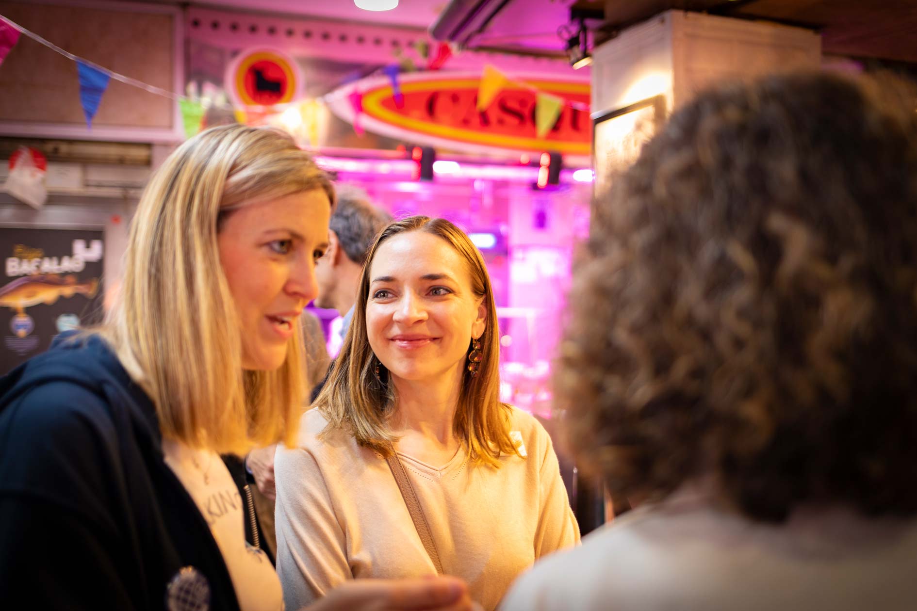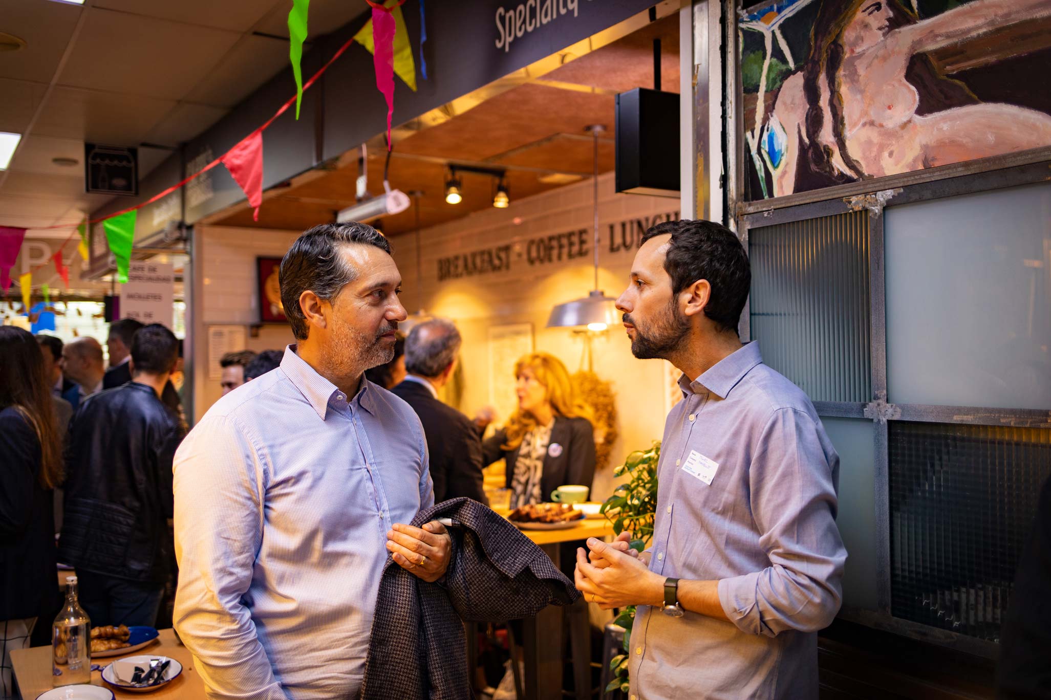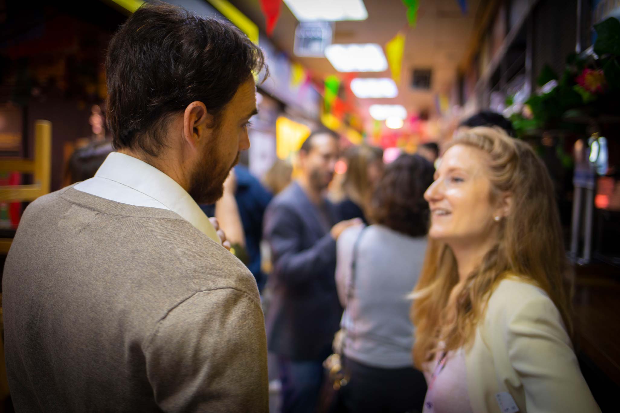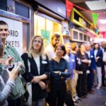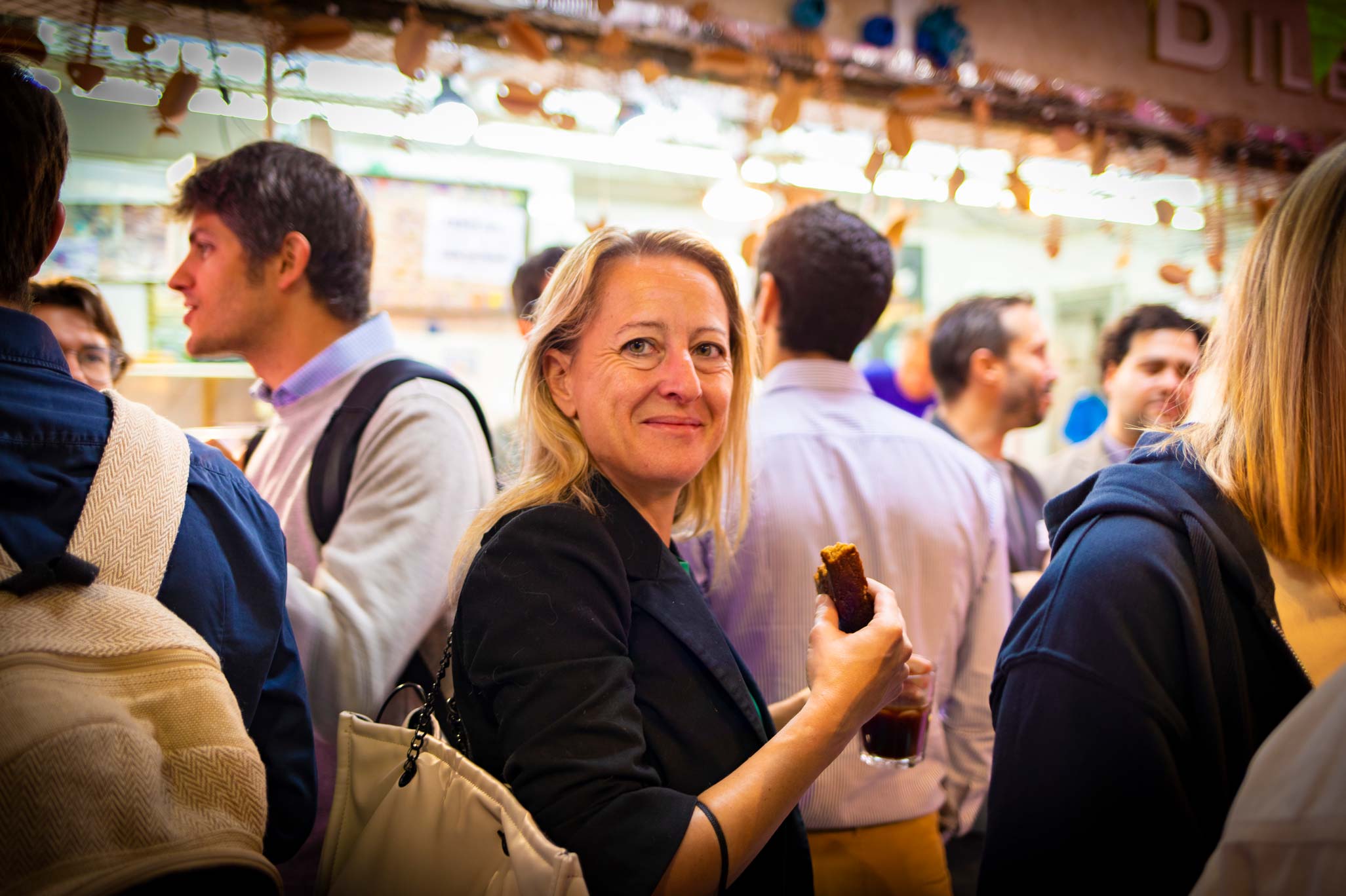Startups y Fondos de inversión interactuando en el Mercado de Antón Martín durante el MadBlue Impact Morning Mixer.