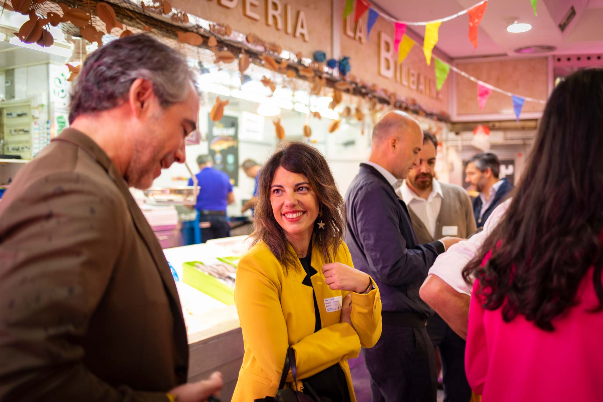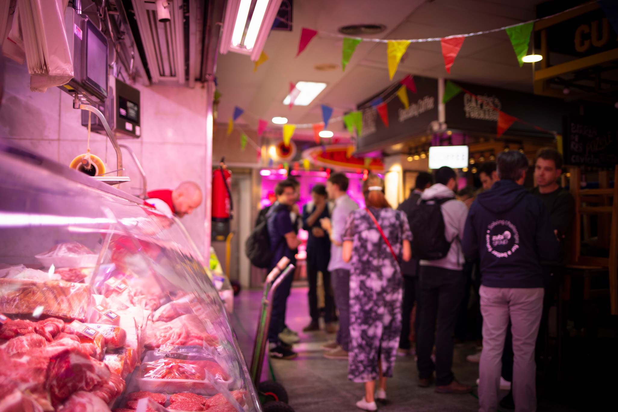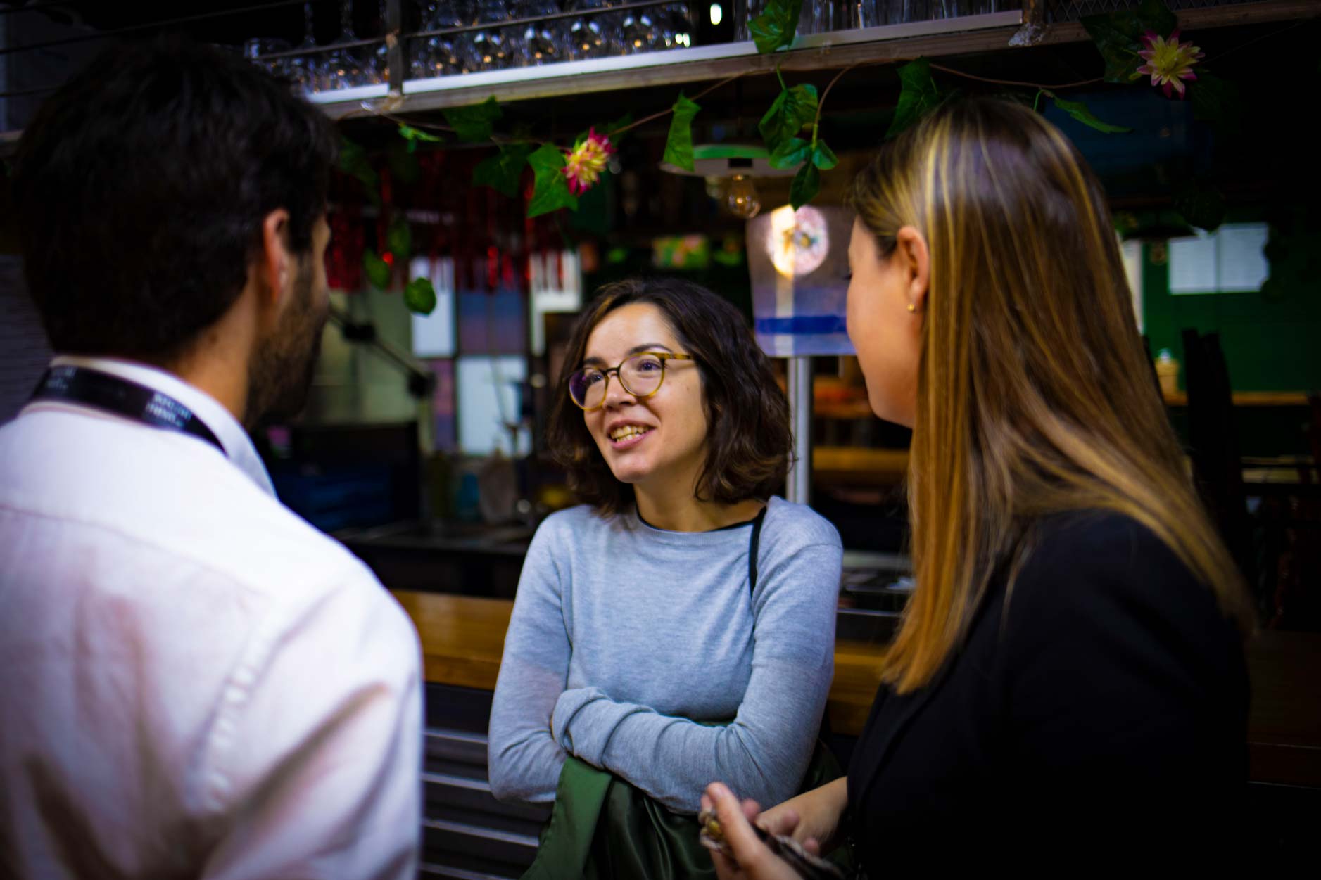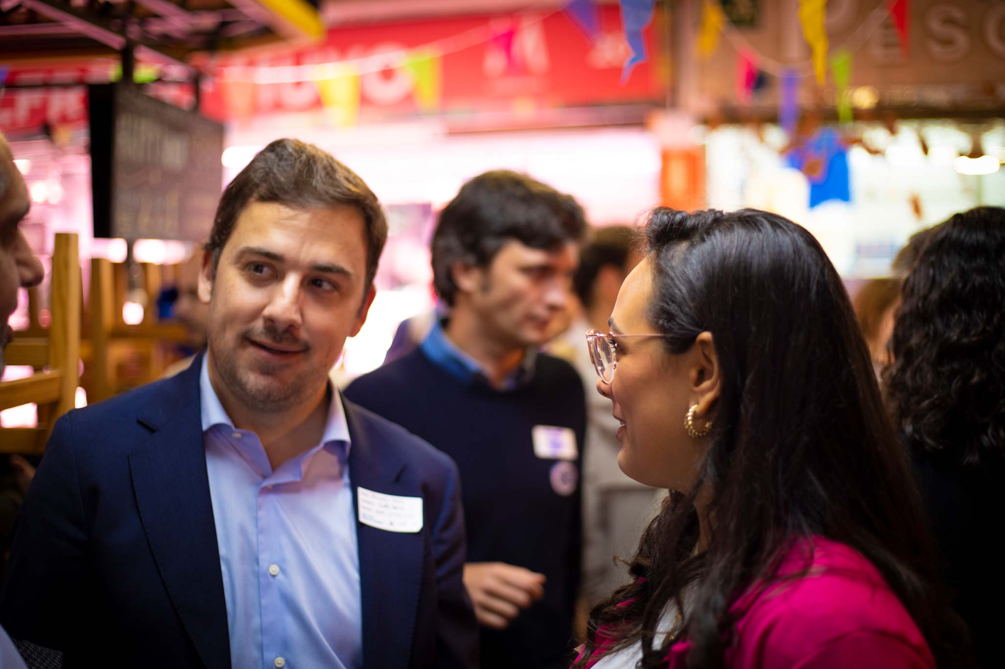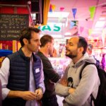 Startups y Fondos de inversión interactuando en el Mercado de Antón Martín durante el MadBlue Impact Morning Mixer.