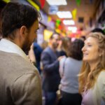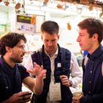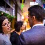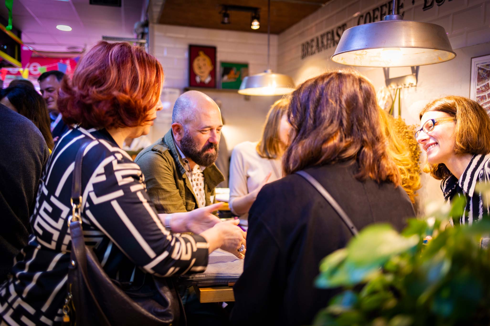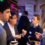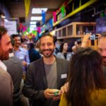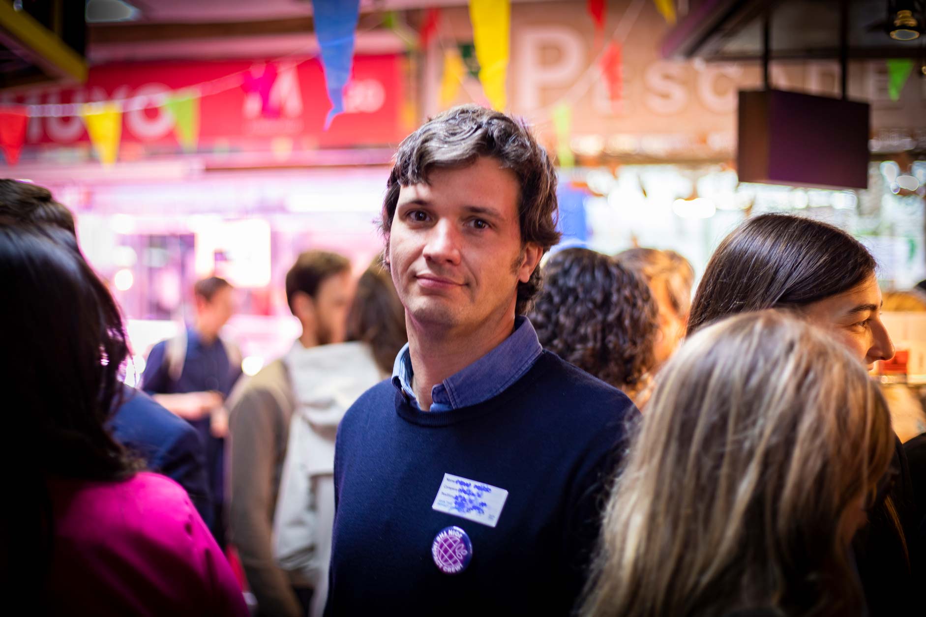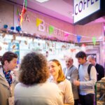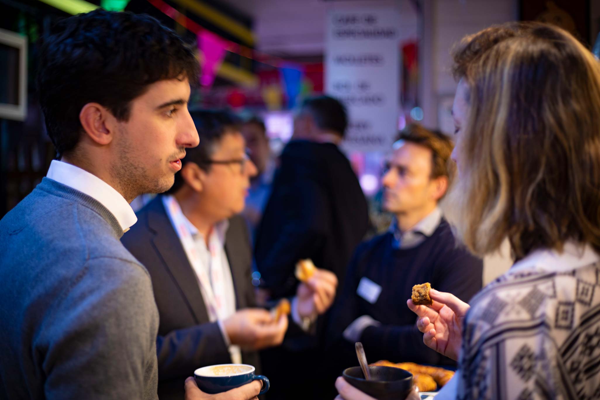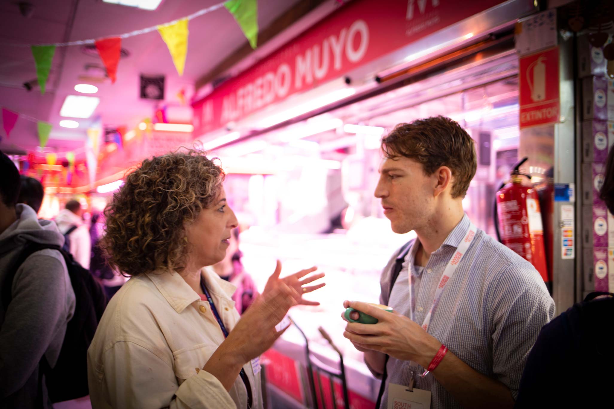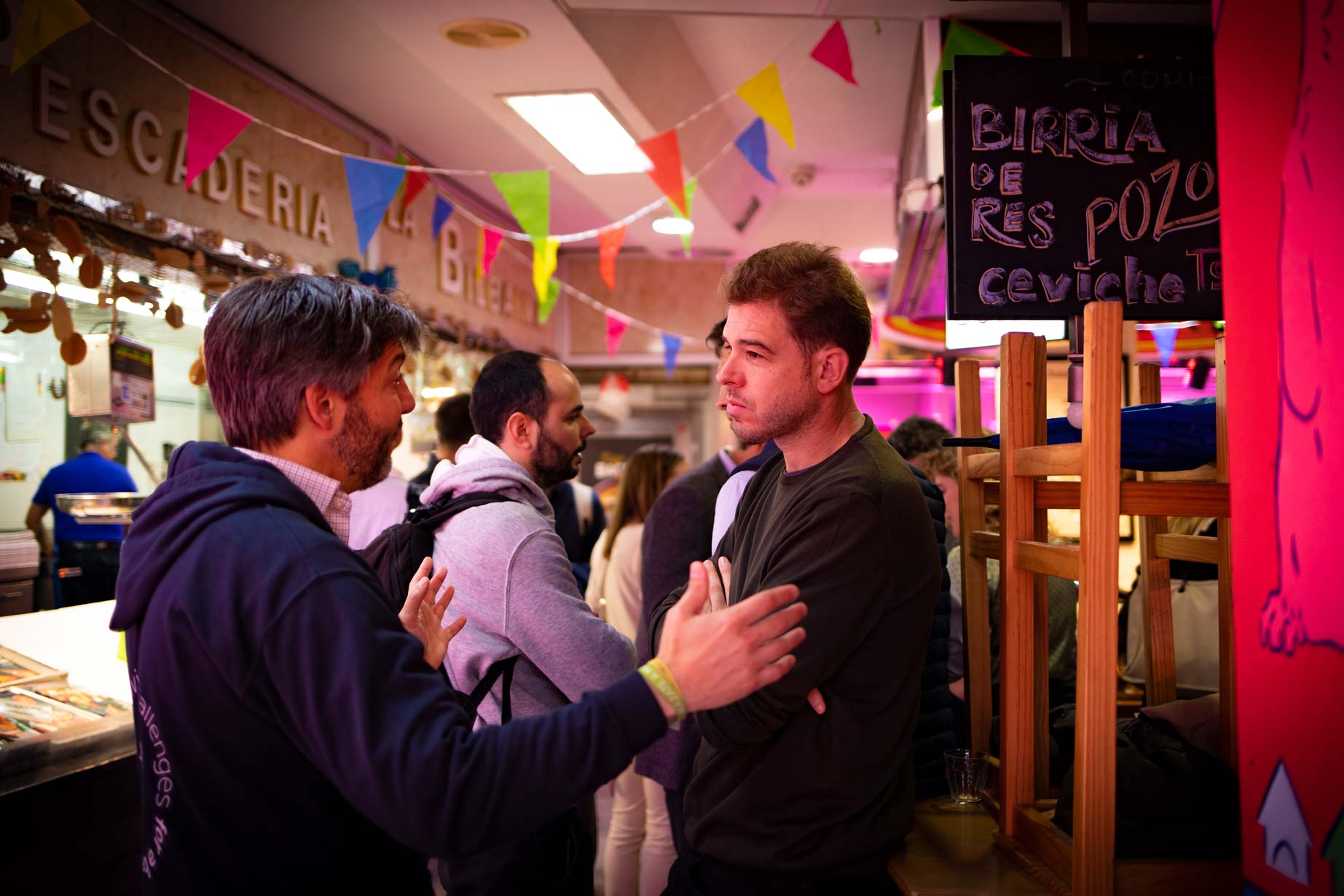 Startups y Fondos de inversión interactuando en el Mercado de Antón Martín durante el MadBlue Impact Morning Mixer.